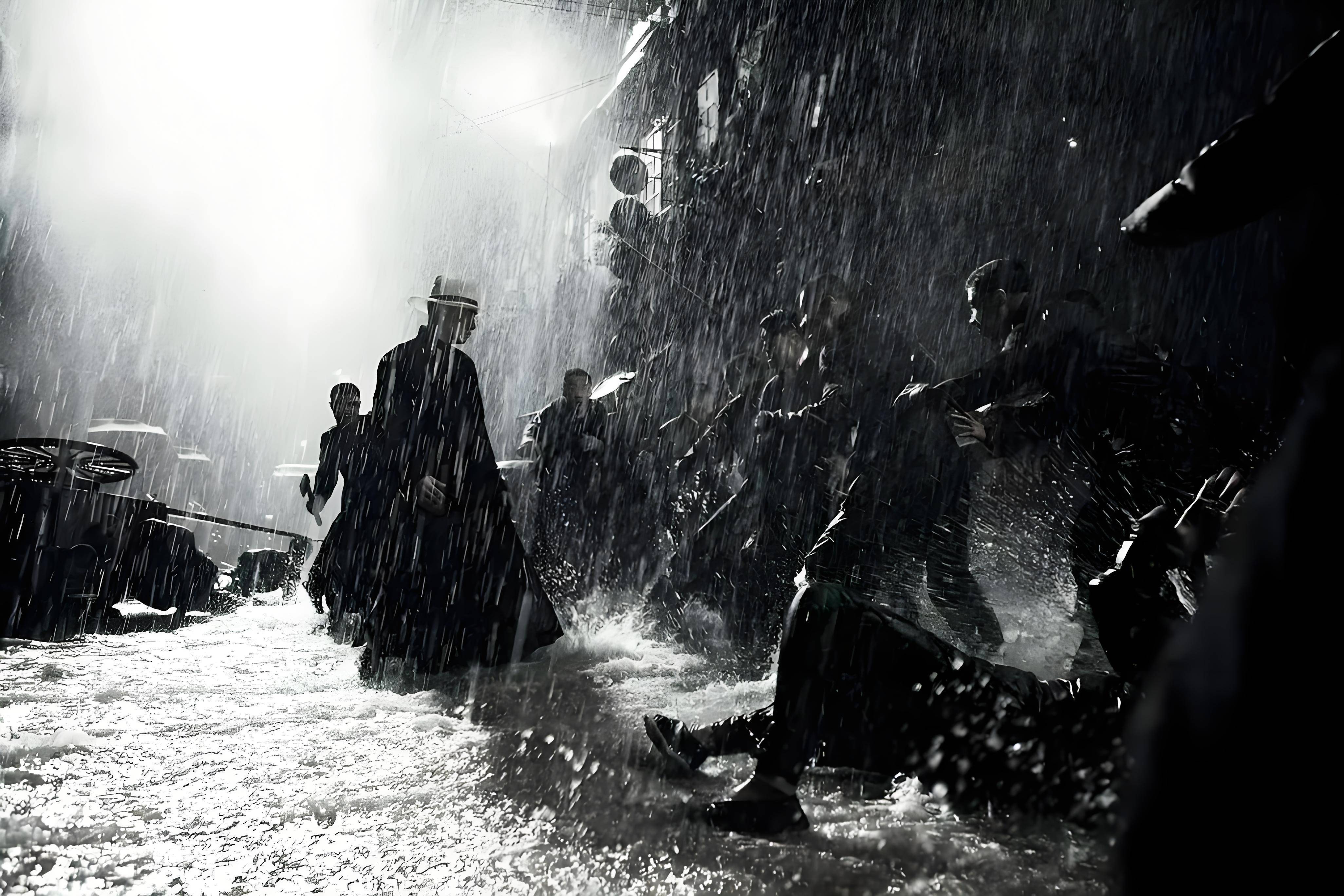 这份执着渗透在每处细节:金楼场景的窗棂雕镂、桌布纹样均严格考据民国风貌,梁朝伟闭关九月苦练咏春至胳膊骨折,张震三年磨一剑练出的八极拳竟在正规赛事获奖,章子怡为演宫二吃透八卦掌精髓。无剧本拍摄的王家卫,常以一张20行字的纸条拍一整天,雨中激战戏更是耗时一月才成,最终用三个版本(内地130分钟、北美108分钟、3D版111分钟)完成对时代的记述。